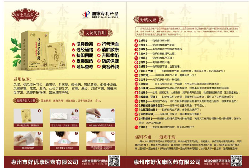 目前,惠州市好優(yōu)康醫(yī)藥科技有限公司正攜旗下“百年艾益堂”系列產(chǎn)品面向全國(guó)誠(chéng)招優(yōu)質(zhì)代理經(jīng)銷商,好機(jī)會(huì)不容錯(cuò)過(guò),期待你的加入!