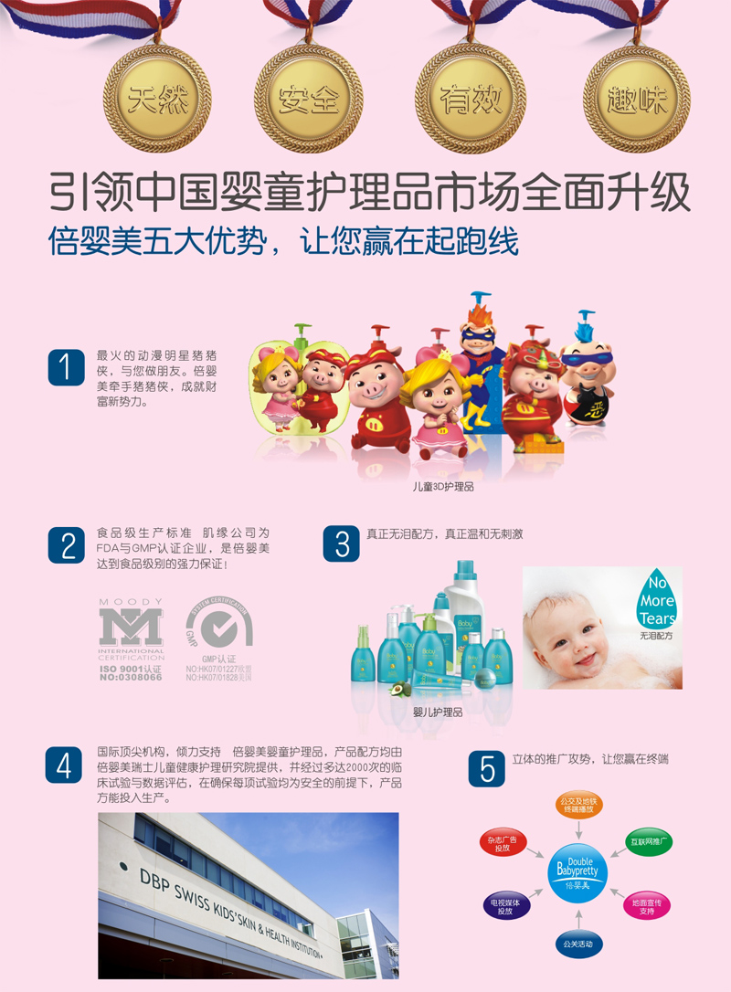 品牌名稱:倍嬰美 主營(yíng)產(chǎn)品:倍嬰美兒童護(hù)膚品加盟中 品牌特色:安全溫和、不傷肌膚