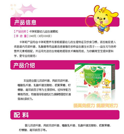 卡咪呢小兒板藍根顆粒是上?ㄟ淠啬笅胗闷酚邢薰酒煜庐a(chǎn)品,專為嬰幼兒設(shè)計,專業(yè)、安全,幫助寶寶可以預(yù)防感冒抵抗病毒,是廣大父母育兒的好幫手?ㄟ淠匦喊逅{根顆粒不含任何色素、防腐劑,安全放心。