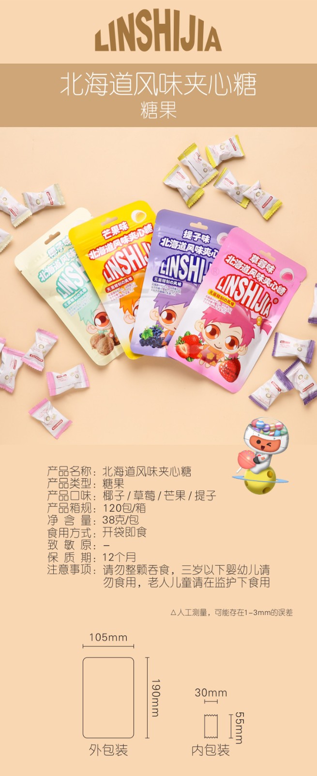 林食佳38g北海道風(fēng)味夾心糖 芒果味
