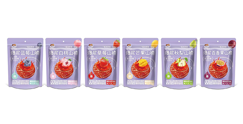 兩個寶貝爆漿山楂系列,有白桃、百香果、草莓、藍莓、芒果、秋梨,六種口味,甄選原果,鮮制而成。外面包裹著一層山楂果,內(nèi)芯搭配水果,果漿注心,輕輕咬一口就會爆漿。