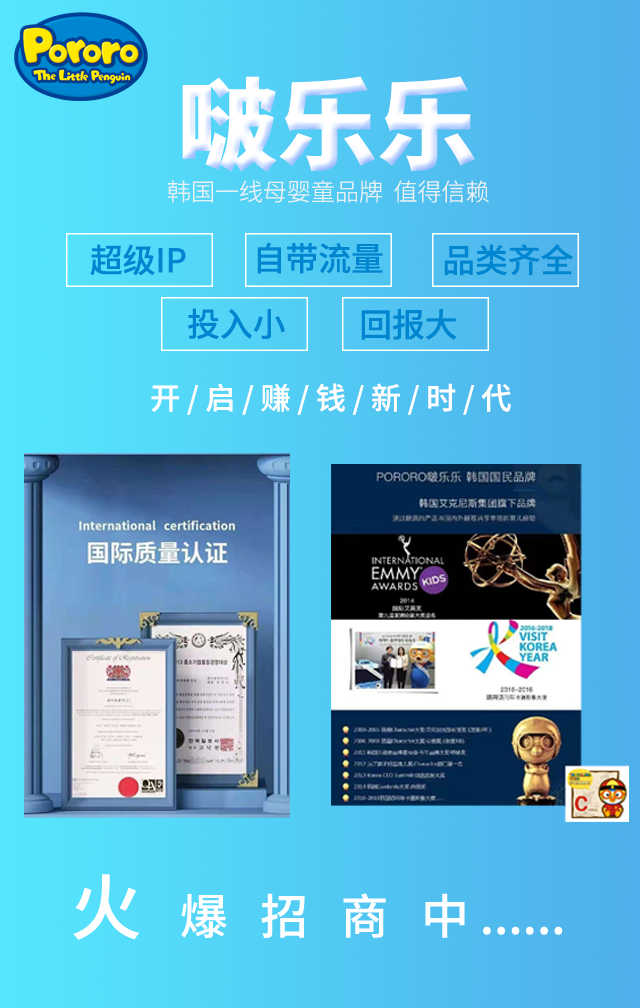 中國杭州浩康文化傳播有限公司,是韓國啵樂樂Pororo品牌在中國大陸地區(qū)唯一指定的全品類運營商。
