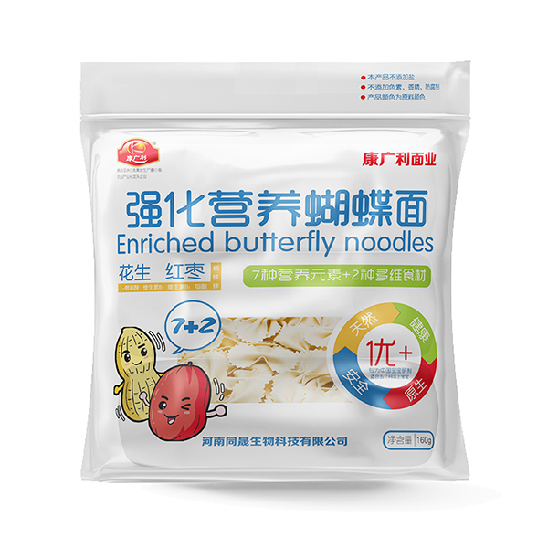 康廣利強(qiáng)化營(yíng)養(yǎng)蝴蝶面,以優(yōu)質(zhì)面粉為原料,將蔬菜和面進(jìn)行完美結(jié)合,采用先進(jìn)工藝精心加工而成,易煮耐煮。經(jīng)獨(dú)特用心調(diào)制淡淡的雜糧和蔬菜香味進(jìn)入蝴蝶面的嚼勁里,讓寶寶的味蕾開(kāi)始旅行。細(xì)滑面體,易消化。7種微量元素+2種多維食材,營(yíng)養(yǎng)豐富。原生,天然,健康,安全。